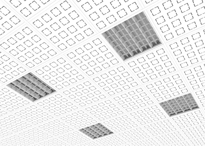 El cielorraso desmontable acústico Acu ex DUR son placas de yeso con distintos tipos de perforaciones con propiedades