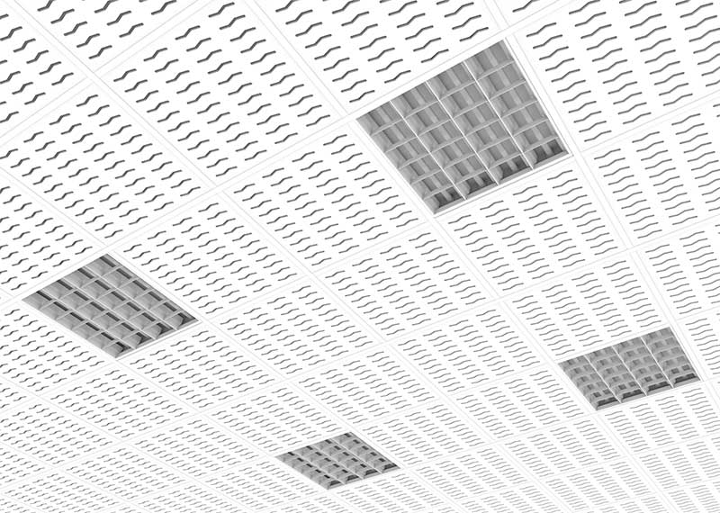 El cielorraso desmontable acústico Acu ex DUR son placas de yeso con distintos tipos de perforaciones con propiedades