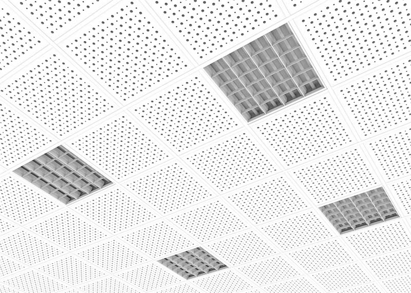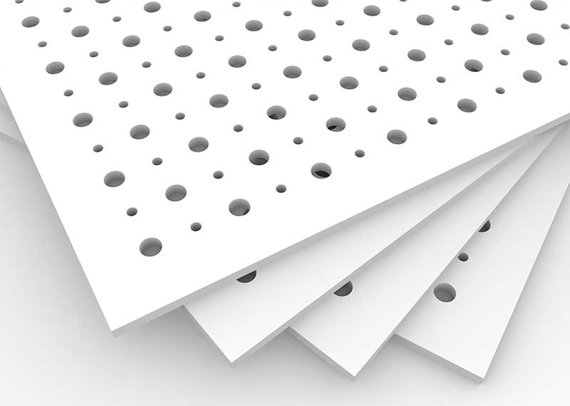 El cielorraso desmontable acústico Acu ex DUR son placas de yeso con distintos tipos de perforaciones con propiedades