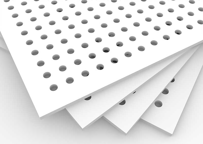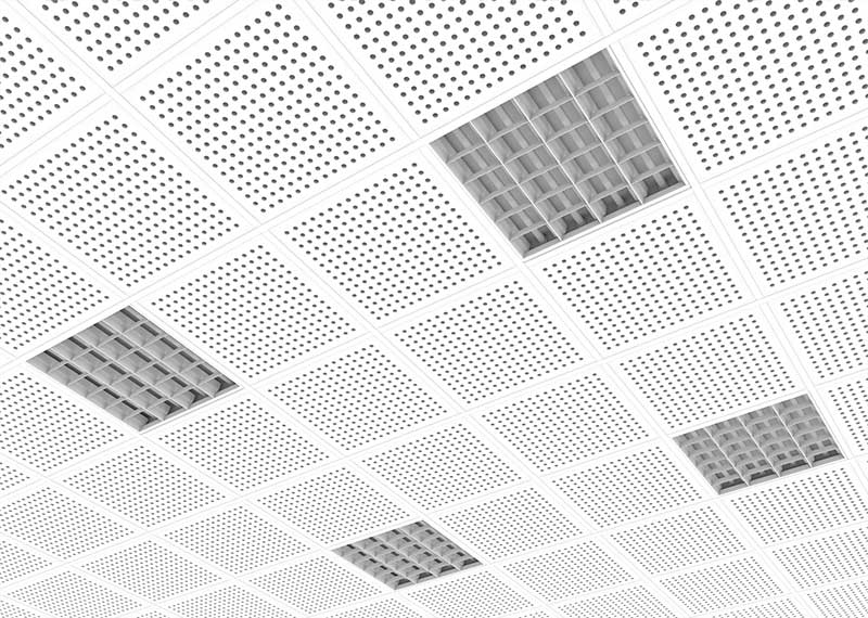 El cielorraso desmontable acústico Acu ex DUR son placas de yeso con distintos tipos de perforaciones con propiedades